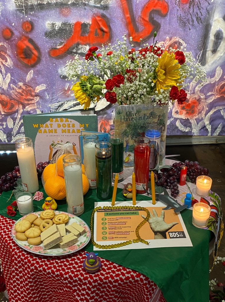Later when exhibited in the Museum of Contemporary Art Nashville (MOCAN) it later converted into a mourning place for Palestinians in Nashville to mourn the loses of loved ones and the people who died by the apartheid in May 2021; on the floor is a list of all the lives lost that month (totaling in 15 pages).