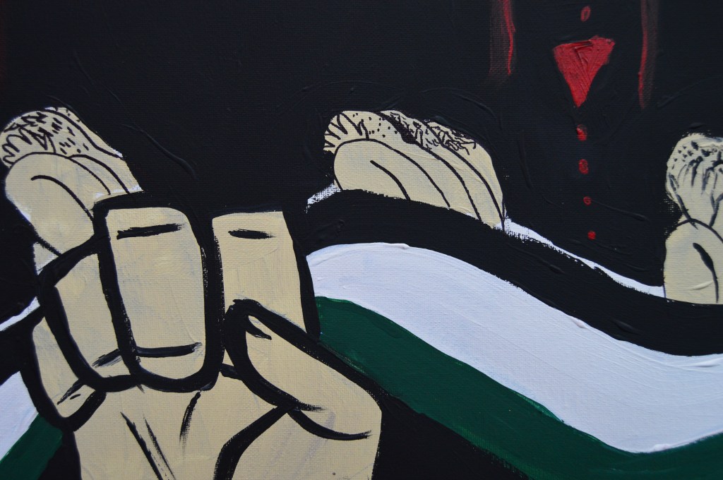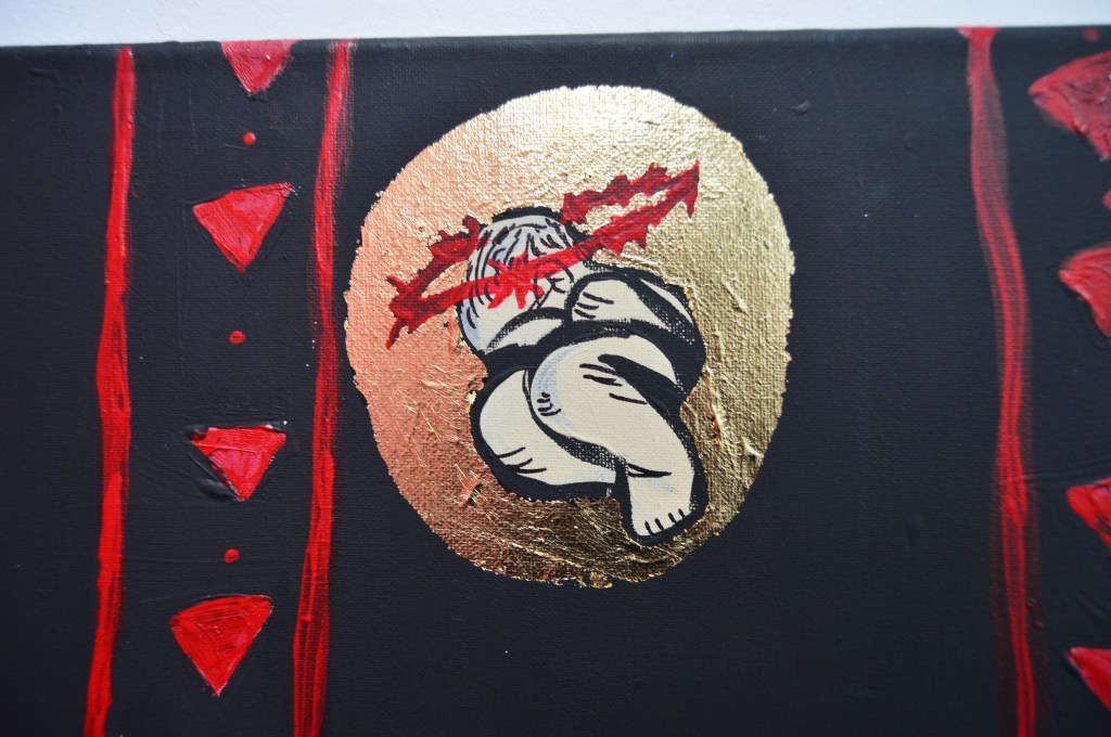 Acrylic, artist’s hair, and gold leaf